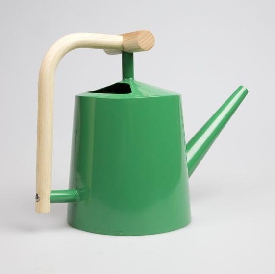 Green Metal Watering Can with Natural Wooden Top Handle and Tapered Body For Indoor & Outdoor Plants