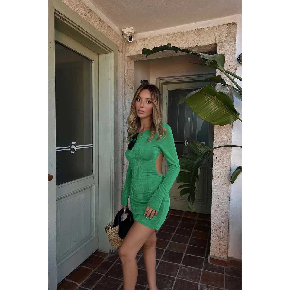 เดรสสั้นสีเขียวพร้อมระบายพิมพ์ลายตามสั่ง แบบไร้สายรัดไหล่ เอวทรงเอ็มไพร์ ไซส์พลัส สำหรับใส่ไปเที่ยวกลางวันหรือโอกาสพิเศษ ความยาวระดับเข่าถึงพื้น ไซส์ XS-XL