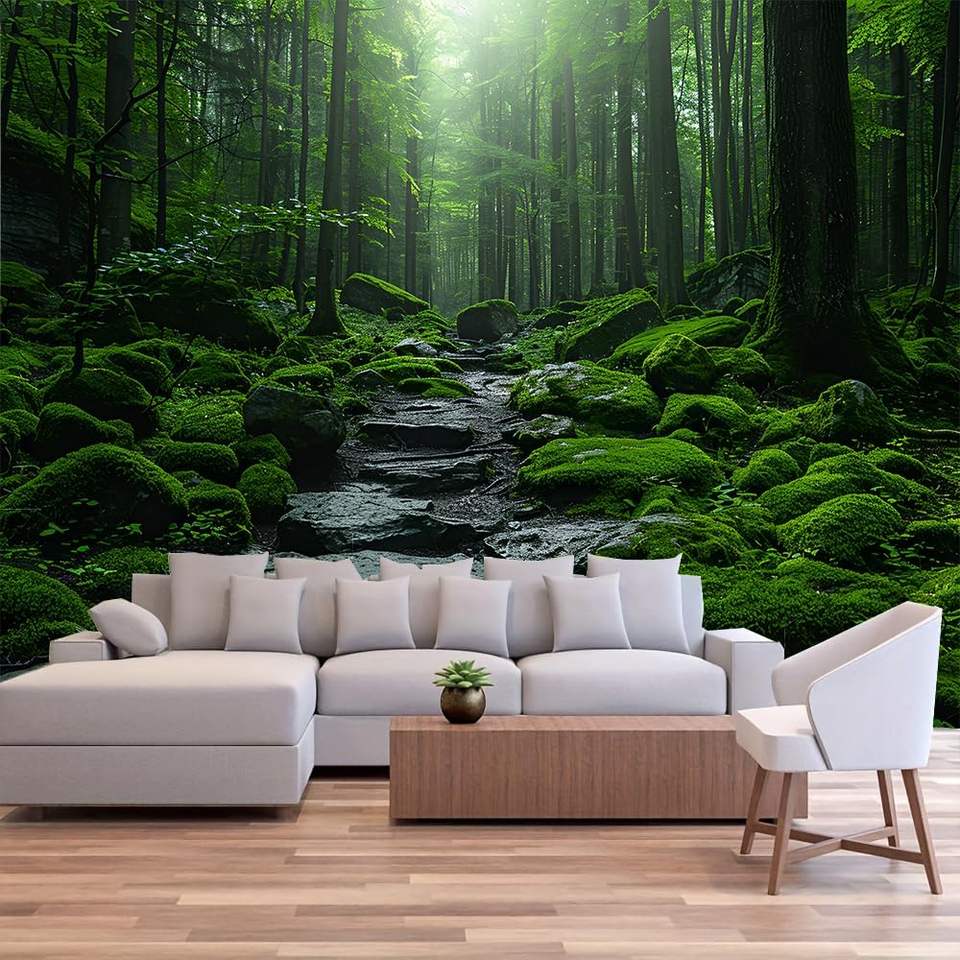 พรมแขวนผนังลายป่าหมอกสีเขียวตกแต่งบ้านสไตล์ป่าธรรมชาติของตกแต่งบ้านและสวนห้องนั่งเล่นห้องนอนของตกแต่งสต็อกฮาโลวีน
