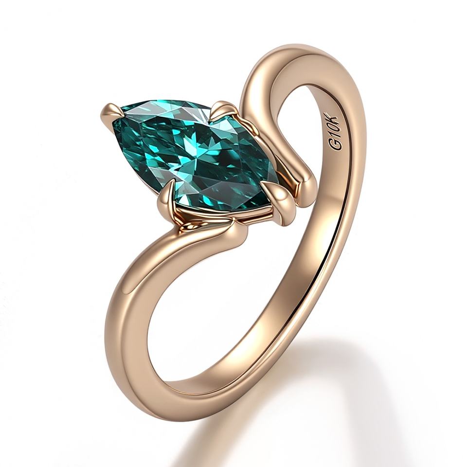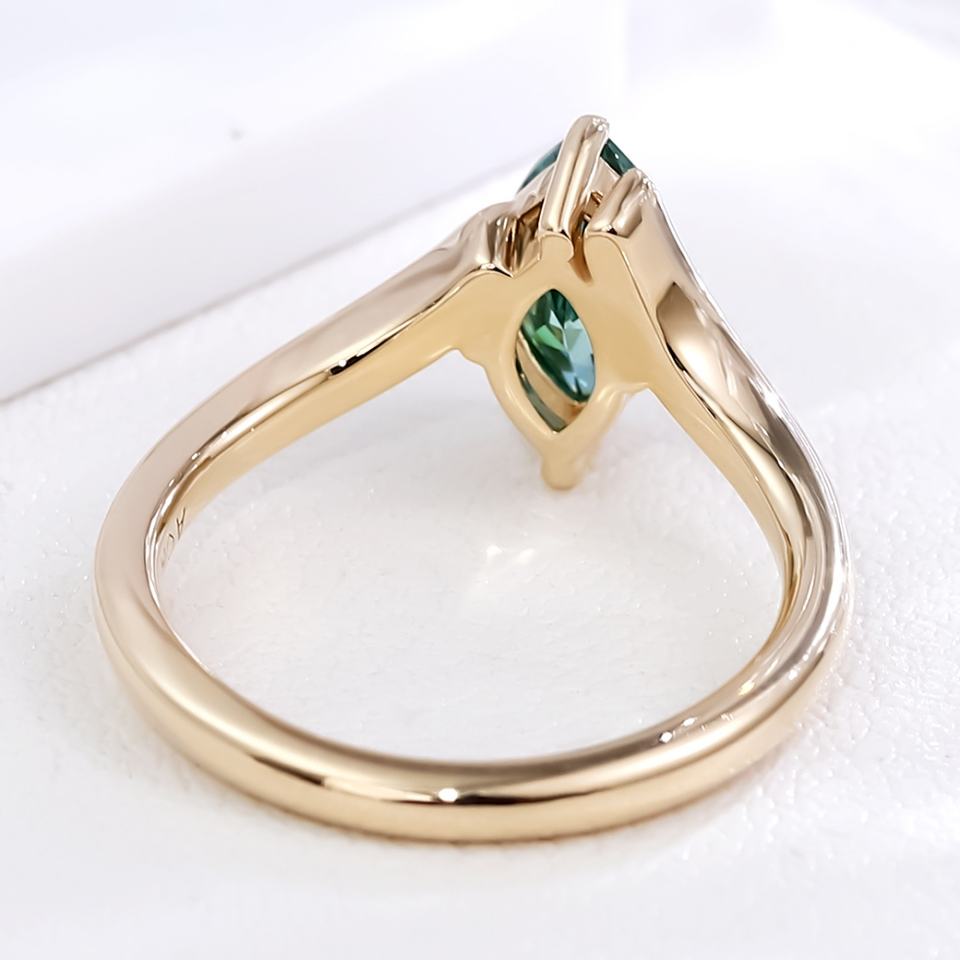 แหวนแต่งงานเพชรโมอิสซาไนต์สีเขียว ทองคำแท้ 10K ดีไซน์สี่ก้าน สไตล์แฟชั่น สำหรับผู้หญิง
