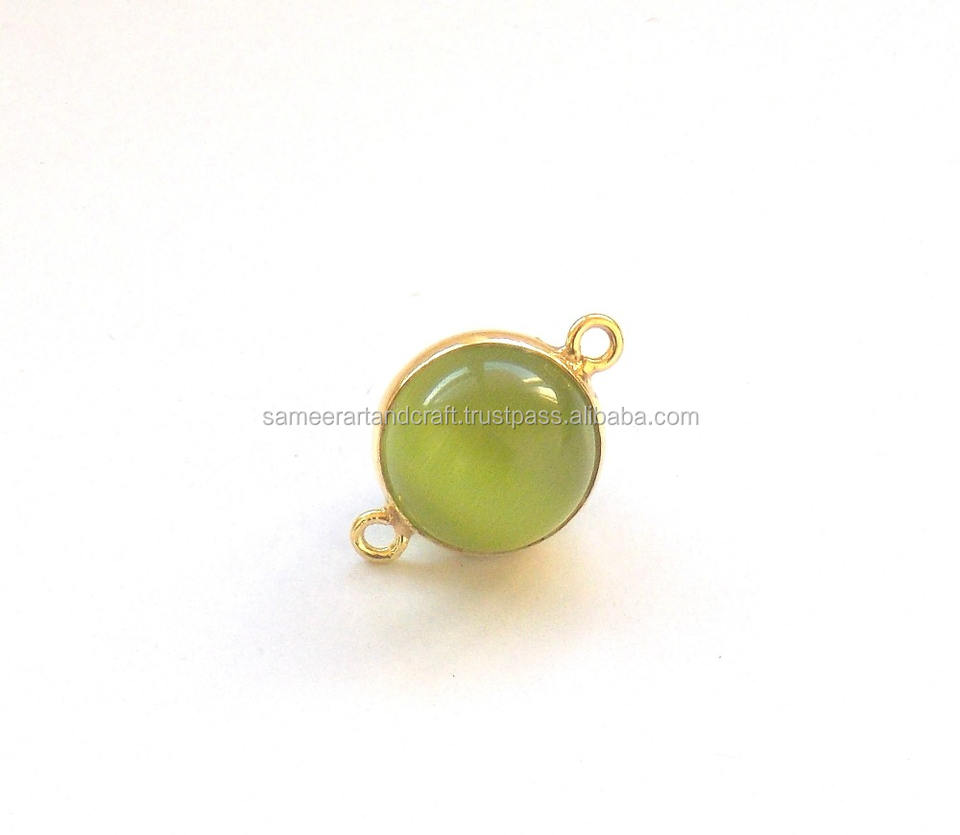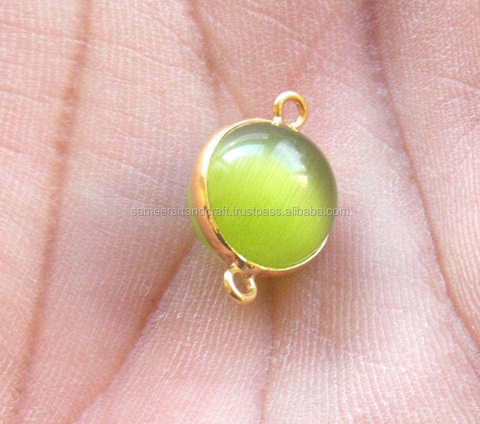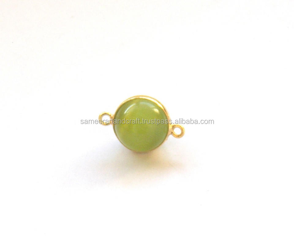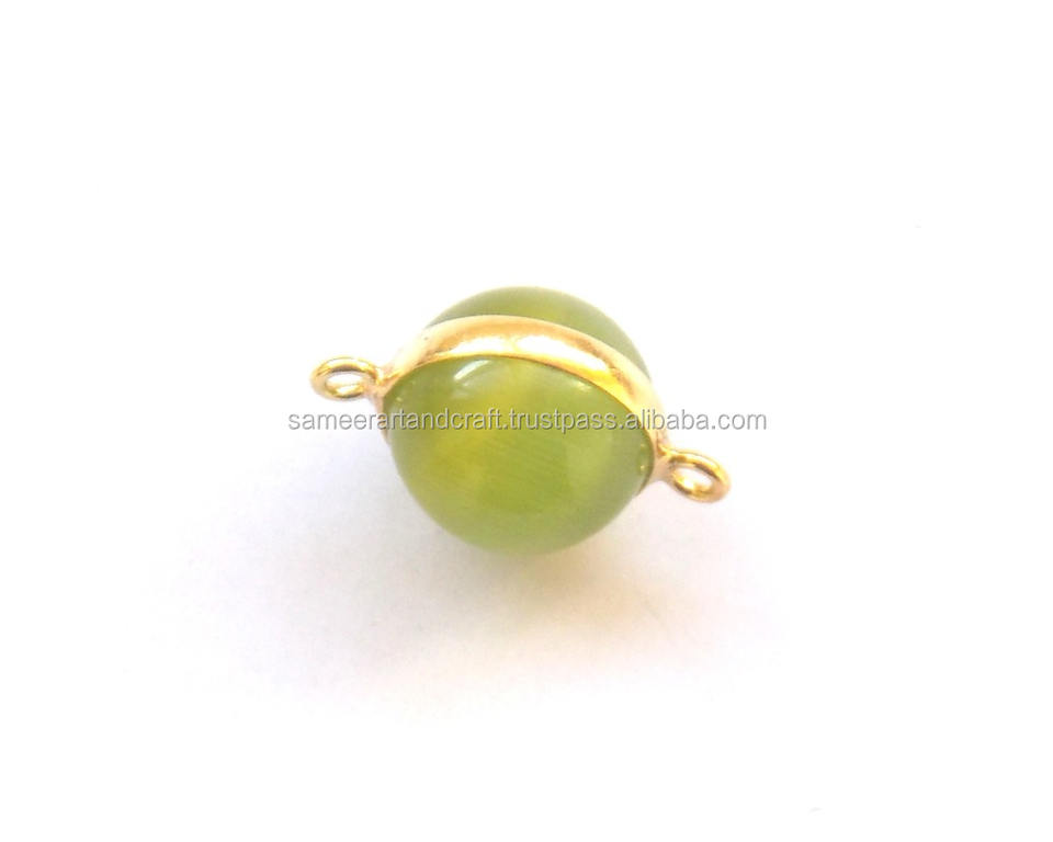 อะไหล่ตกแต่งอัญมณีสีเขียวโมโนลิซ่า รูปทรงลูกบอลทองเหลือง ชุบทอง 18K สำหรับทำเครื่องประดับ แบบสองห่วง ขอบเรียบ หินทำมือ