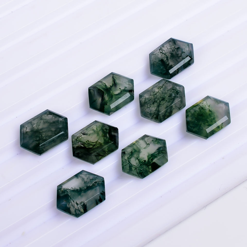 Green Moss Agate Elongated Hexagon Step Cut Natural Loose Gemstone Jewelry Making Customizable Size 12.0x8.0x4.5 mm High Quality
