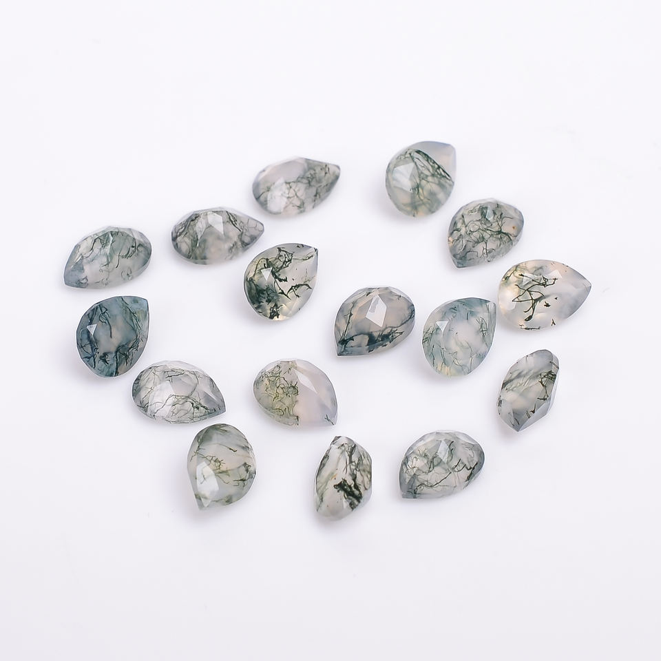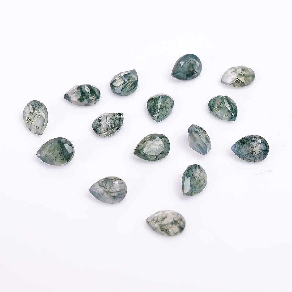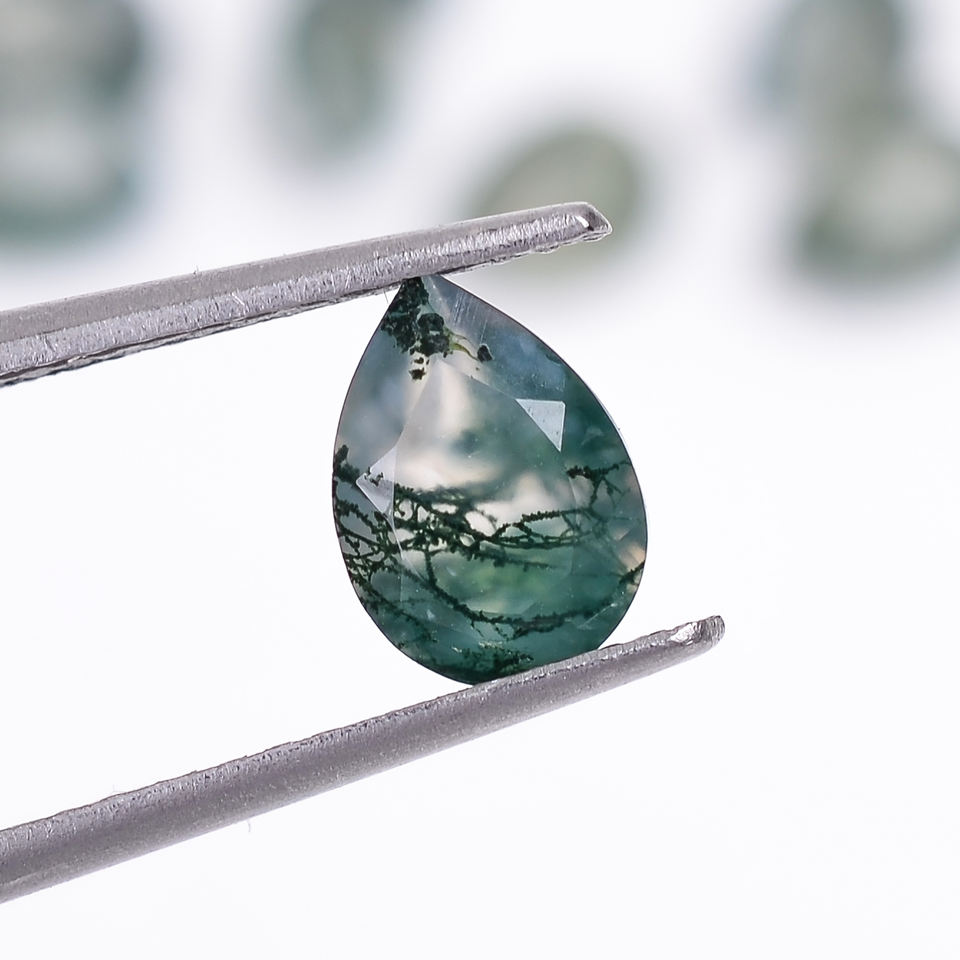 มอสอาเกตสีเขียวคุณภาพสูง รูปทรงลูกแพร์เจียระไนแบบบริลเลียนท์ พลอยธรรมชาติเม็ดเดี่ยวสำหรับทำเครื่องประดับ น้ำหนัก 0.45 กะรัต ปรับขนาดได้ 6.0x4.0x3.0 มม.