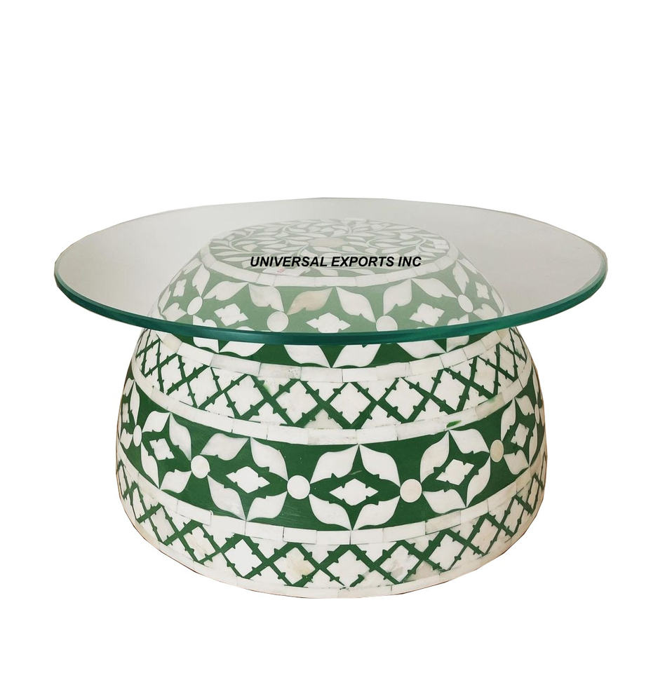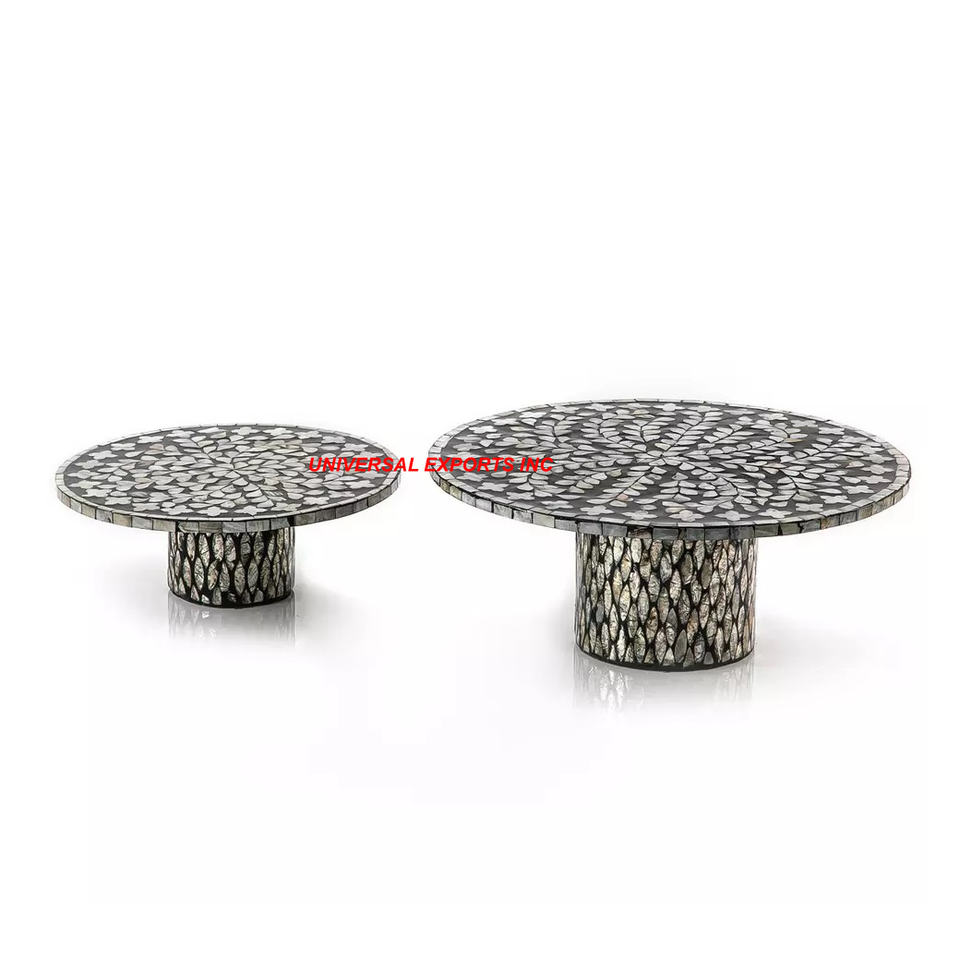 แท่นวางเค้กสีเขียวมุกทรงกลมทำด้วยมือแท่นวางเค้กสุดหรู