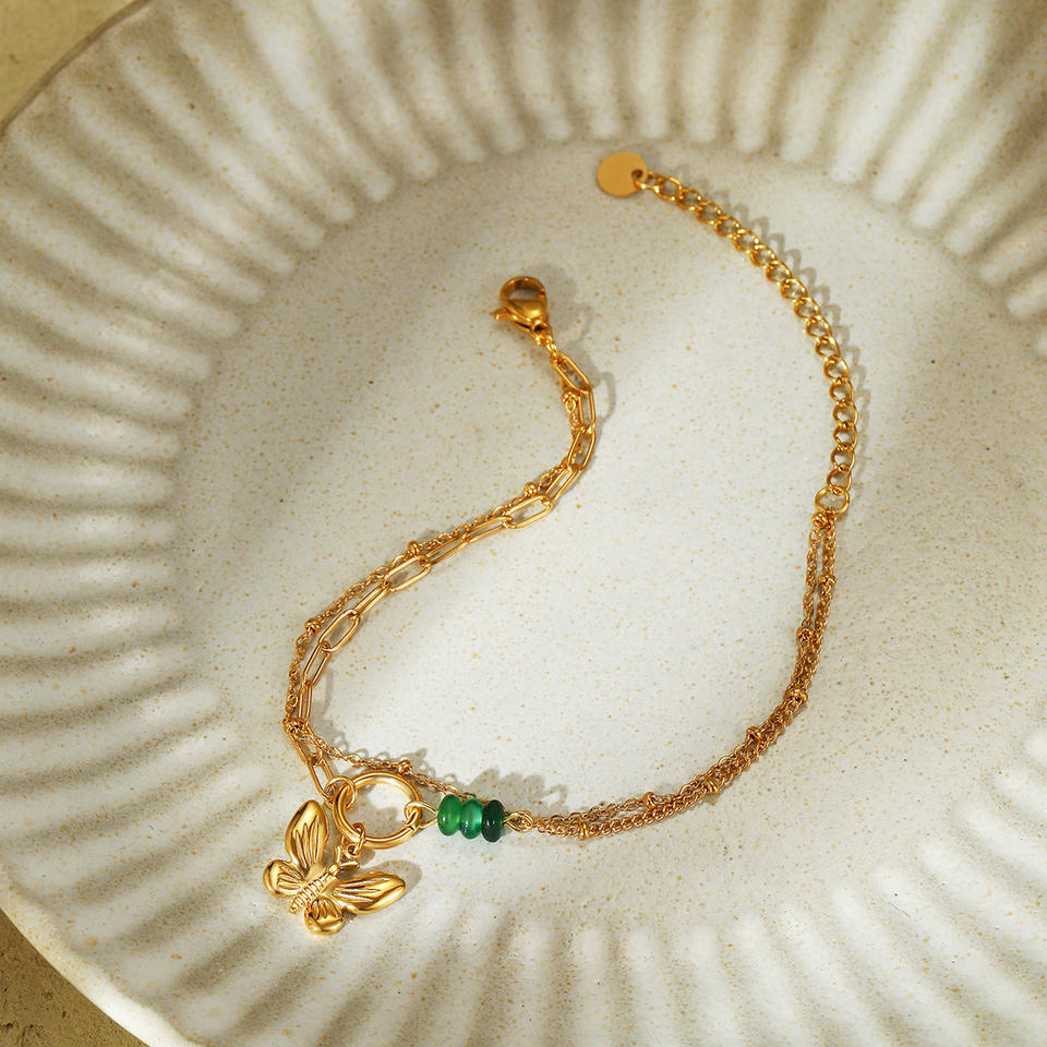 ชื่อผลิตภัณฑ์:สร้อยข้อมือลูกปัดผีเสื้อสีเขียวหินธรรมชาติ