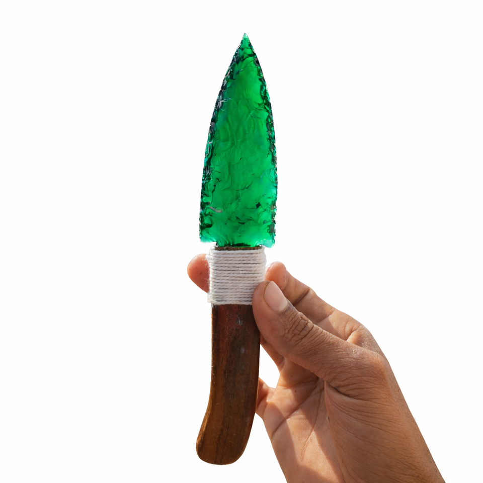 มีดแก้วออบซิเดียนสีเขียว ทำด้วยมือ ใบมีดคริสตัลทนทาน ของสะสม ของตกแต่งบ้าน ของขวัญ งานศิลปะ งานฝีมือ ของตกแต่งกระจก