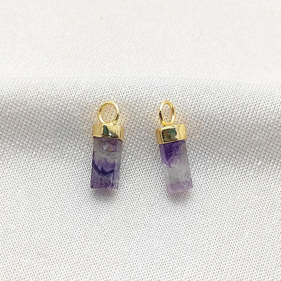 ชื่อหรือคำ:เพชร12x5มม. ทรงกระบอกหกเหลี่ยม925สีทองชุบส่วนปลายจี้อัญมณีทำด้วยมือเสน่ห์เครื่องประดับเงินจำนวนมากขายส่ง