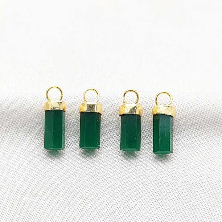 สีเขียวโอนิกซ์12x5มม. ทรงกระบอกหกเหลี่ยมสีเงินชุบทองจี้ทำด้วยมือสีเขียวโอนิกซ์เสน่ห์ขายส่งจำนวนมากเครื่องประดับเงิน
