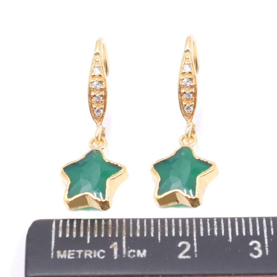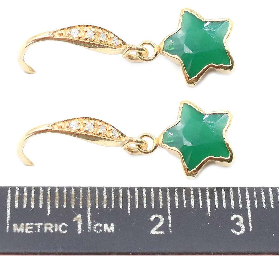 ต่างหูทรงดาวประดับเพทายเงินแท้ชุบทอง ขนาด 27 ถึง 28 มม. ทำจากหินออนิกซ์สีเขียว