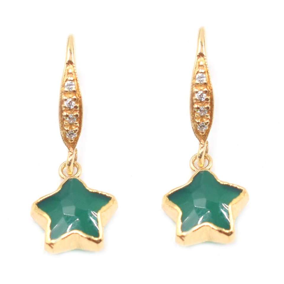 ต่างหูห้อยหูรูปดาว หินโอนิกซ์สีเขียว ชุบทอง