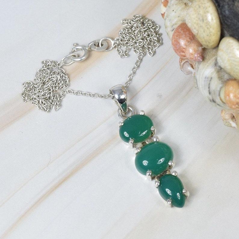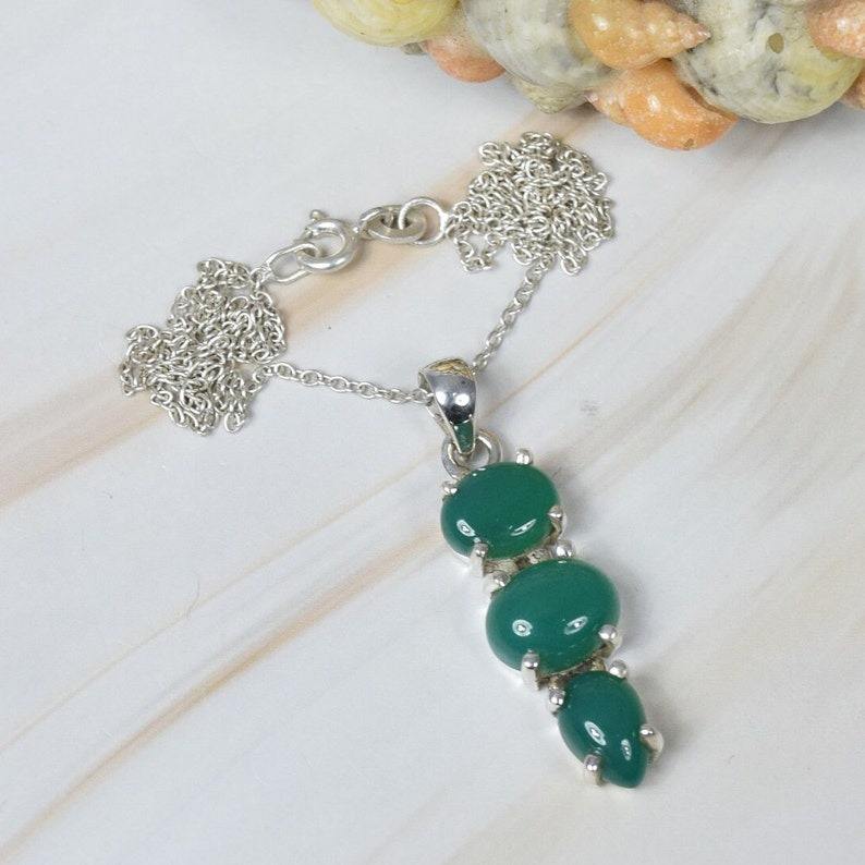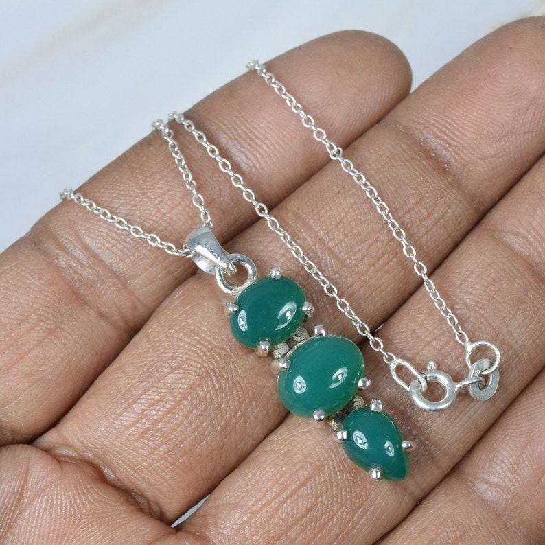 นิลสีเขียว 925 เงินสเตอร์ลิงอัญมณีจี้ W/หรือ W/o Handmade เครื่องประดับจี้รูปไข่ของขวัญสําหรับเธอ