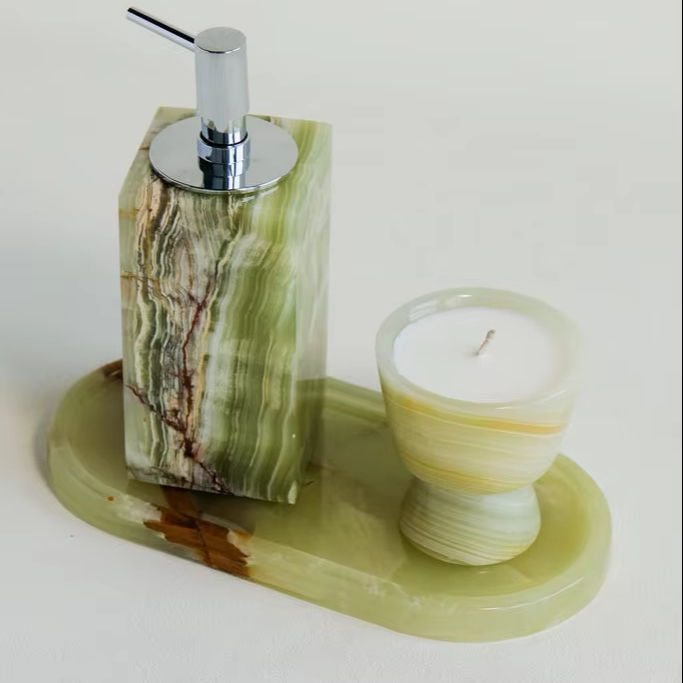 Green Onyx Bath Shower Gel Pump Bottle Elegant Luxury Soap Dispenser Refillable Home Bathroom Decor Skincare Accessories
