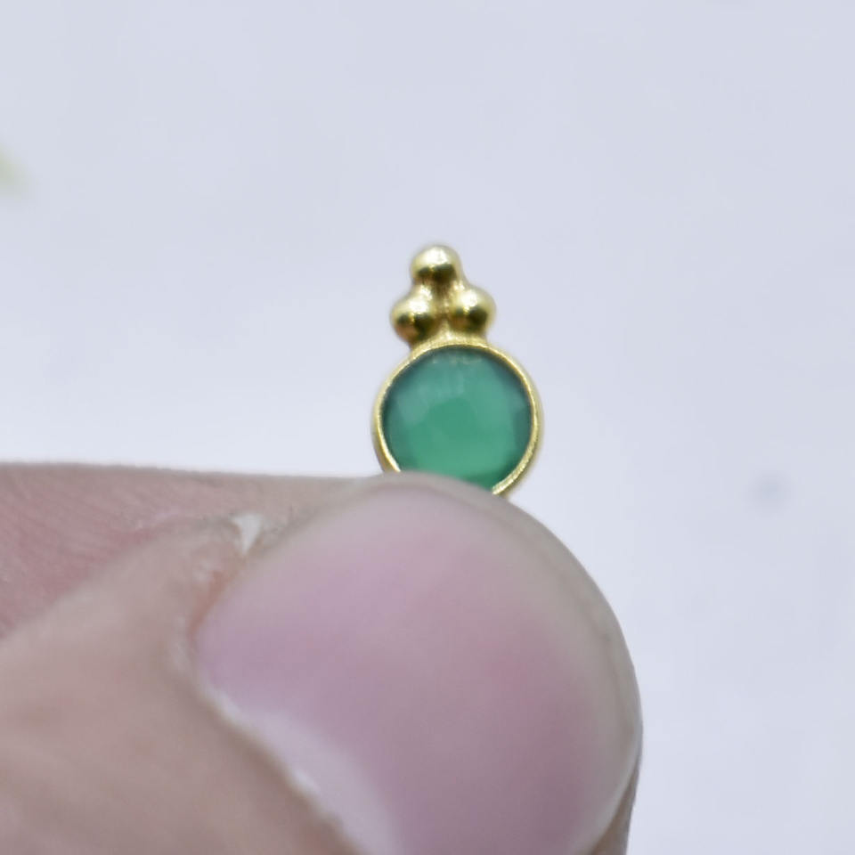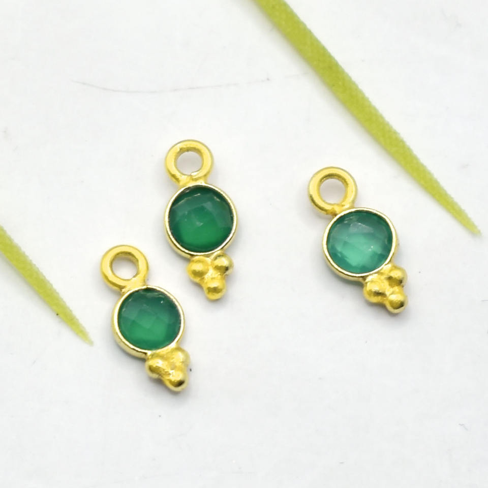 จี้ทรงกลมประดับออนิกซ์สีเขียว ชุบทอง ทำมือ ของขวัญแทนใจ ขายแยกชิ้น
