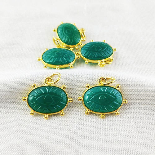 จี้สร้อยคอแกะสลักพลอยสีเขียวโอนิกซ์สีทองรูปตัวโอเน็กซ์