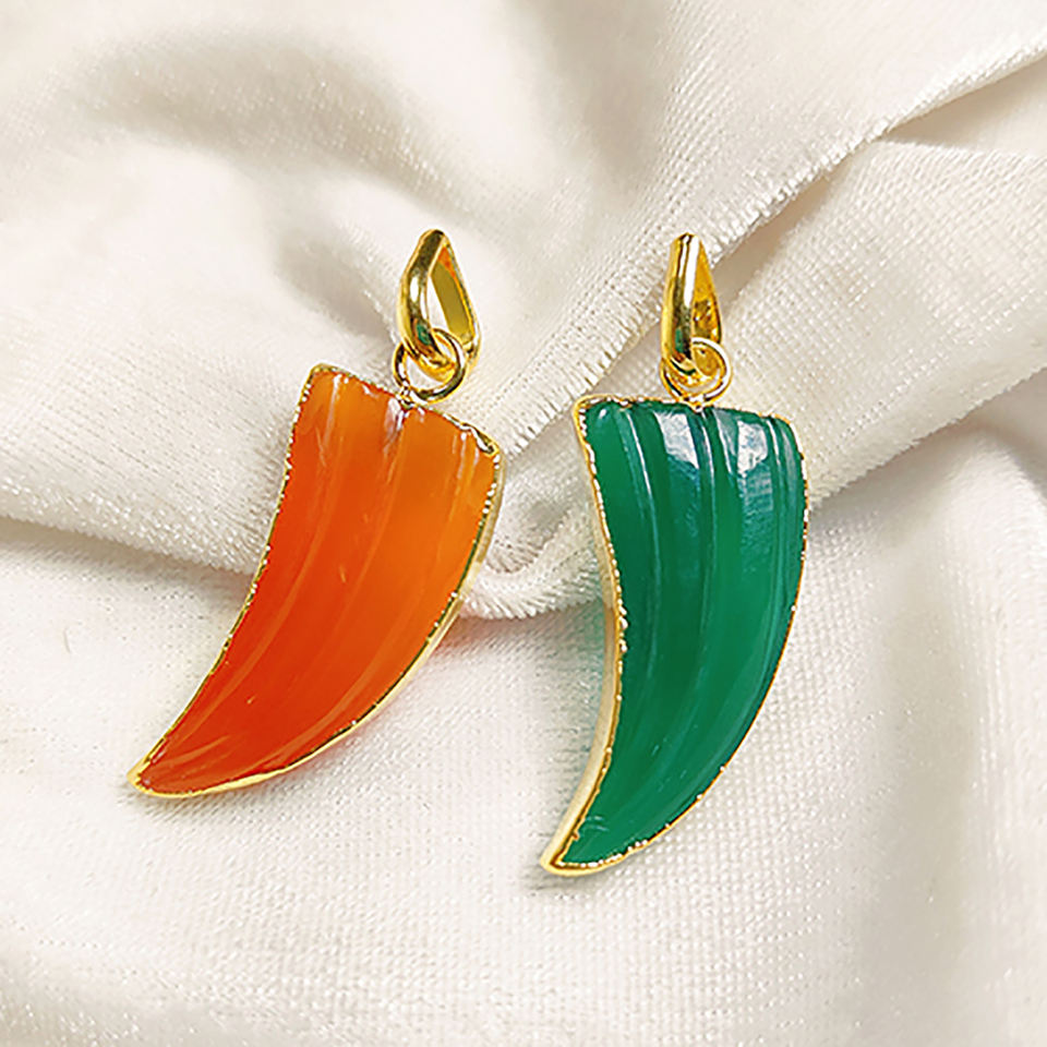 จี้แกะสลักรูปเขางาพลอยโอนิกซ์สีเขียวโอนิกซ์เครื่องประดับและสร้อยคอ