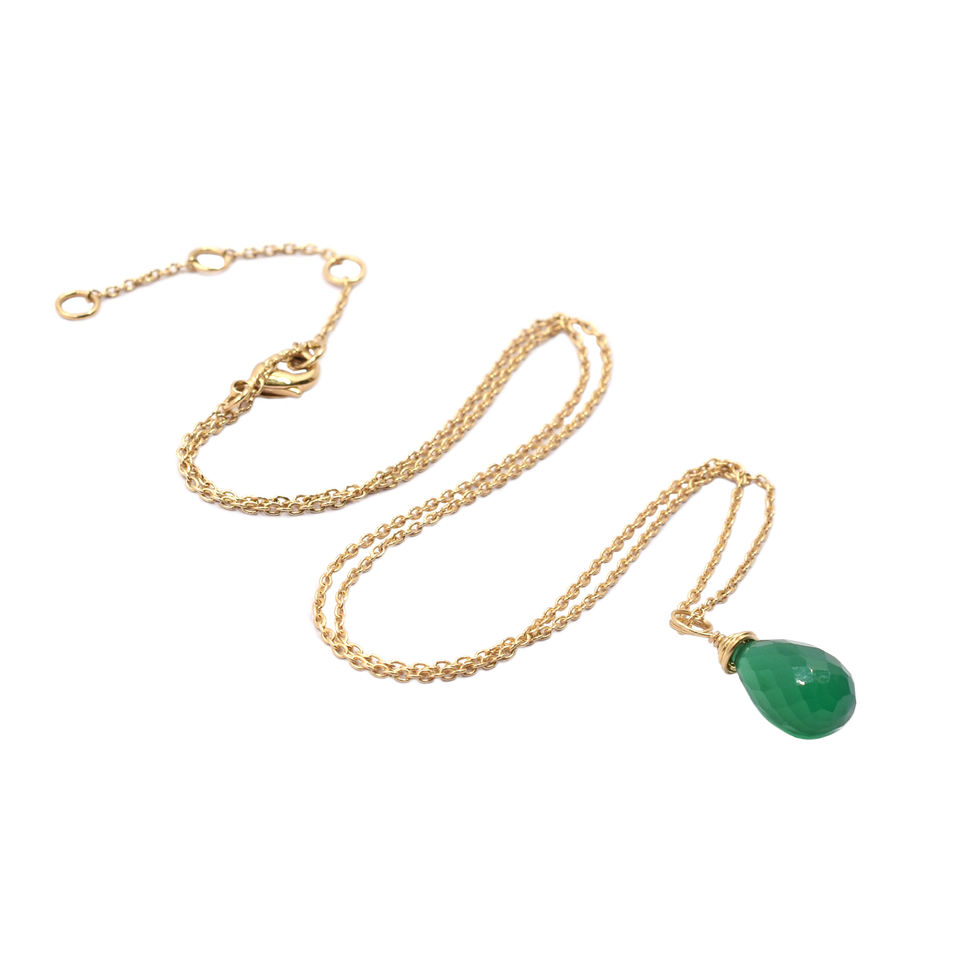 Green Onyx Drop Shape Sterling Silver Gold Plated Handmade Adjustable Nacklace