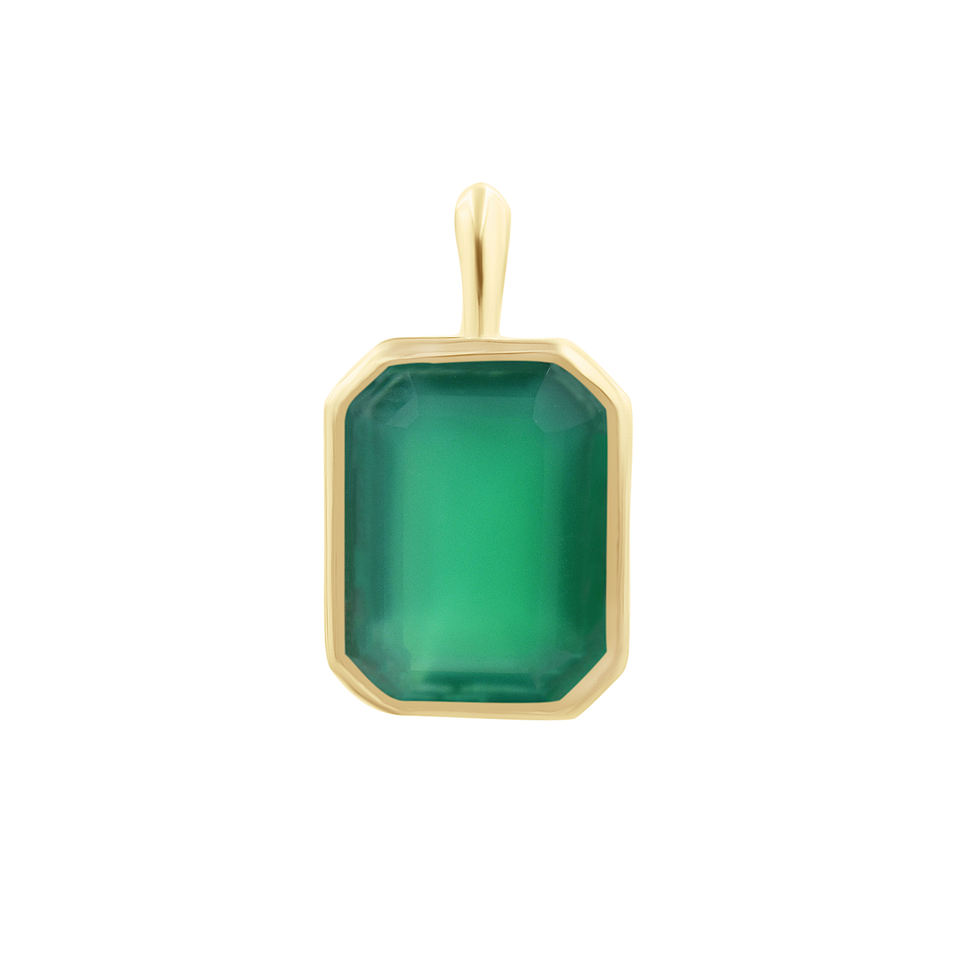 ชื่อผลิตภัณฑ์:สีเขียวโอนิกซ์รูปแปดเหลี่ยมเงินสเตอริงหนามเตยชุบทองจี้
