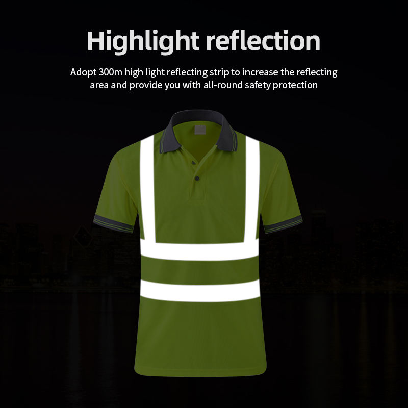 เสื้อกั๊กนิรภัยผ้าฝ้ายสีเขียวส้ม เสื้อสะท้อนแสงคุณภาพสูง เสื้อทำงานผู้ชาย เสื้อยืด