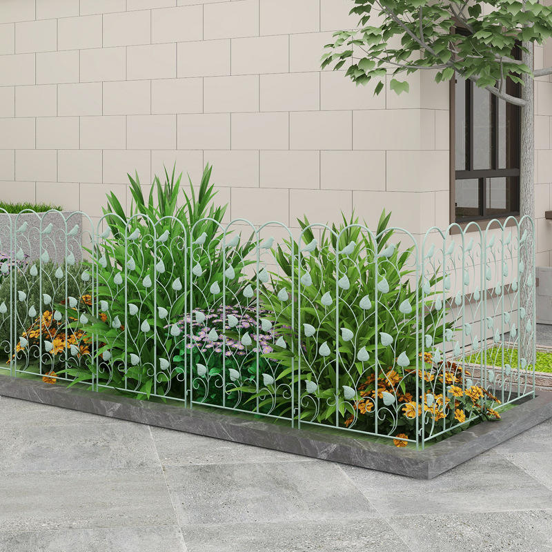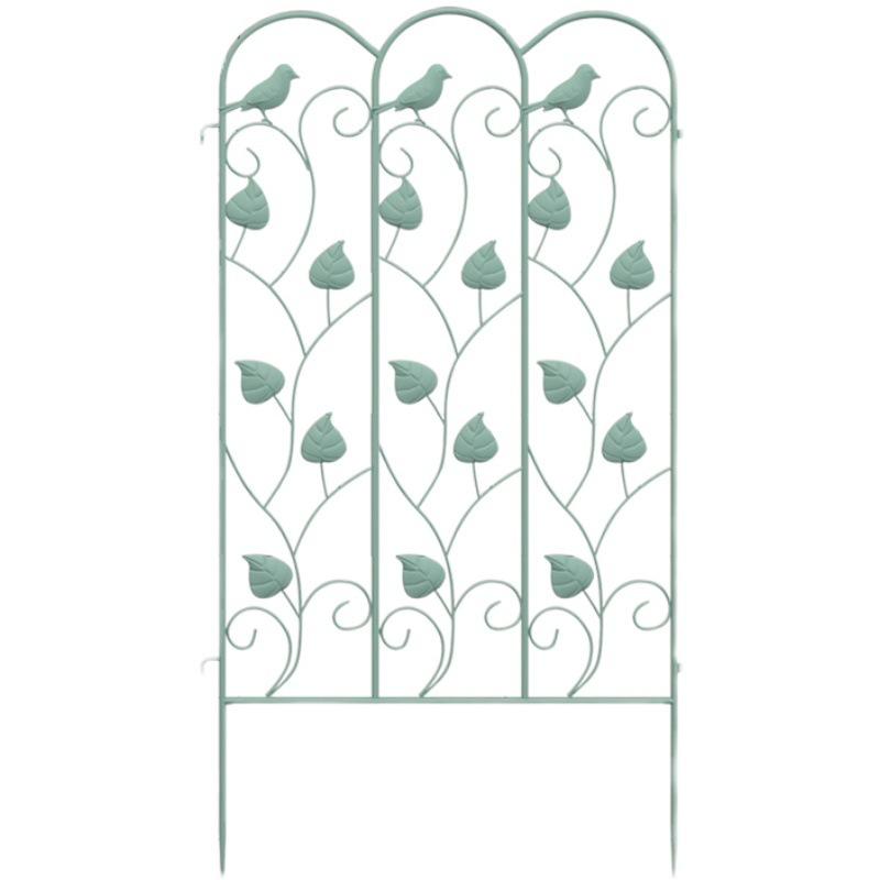 รั้วสวนตกแต่งสีเขียวรูปสี่เหลี่ยมผืนผ้าขนาดกลางสำหรับกลางแจ้ง พร้อมดีไซน์รูปนกและใบไม้ สำหรับป้องกันแปลงดอกไม้