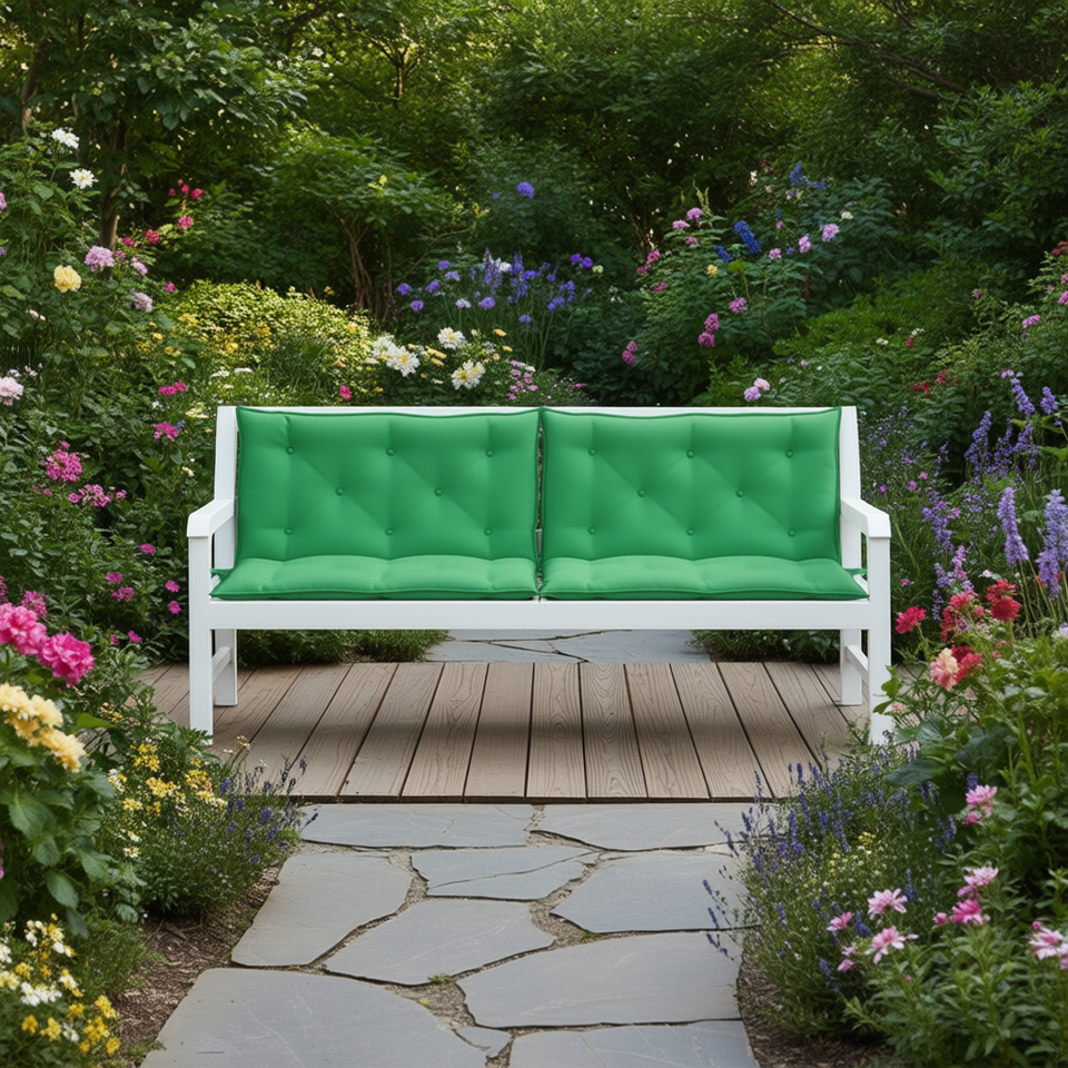 ชุดเบาะรองนั่งกลางแจ้งผ้าอ็อกซ์ฟอร์ดสีเขียว 2 ชิ้น ใยกลวง ทนน้ำ ถอดซักได้ ใช้ได้ทุกฤดู