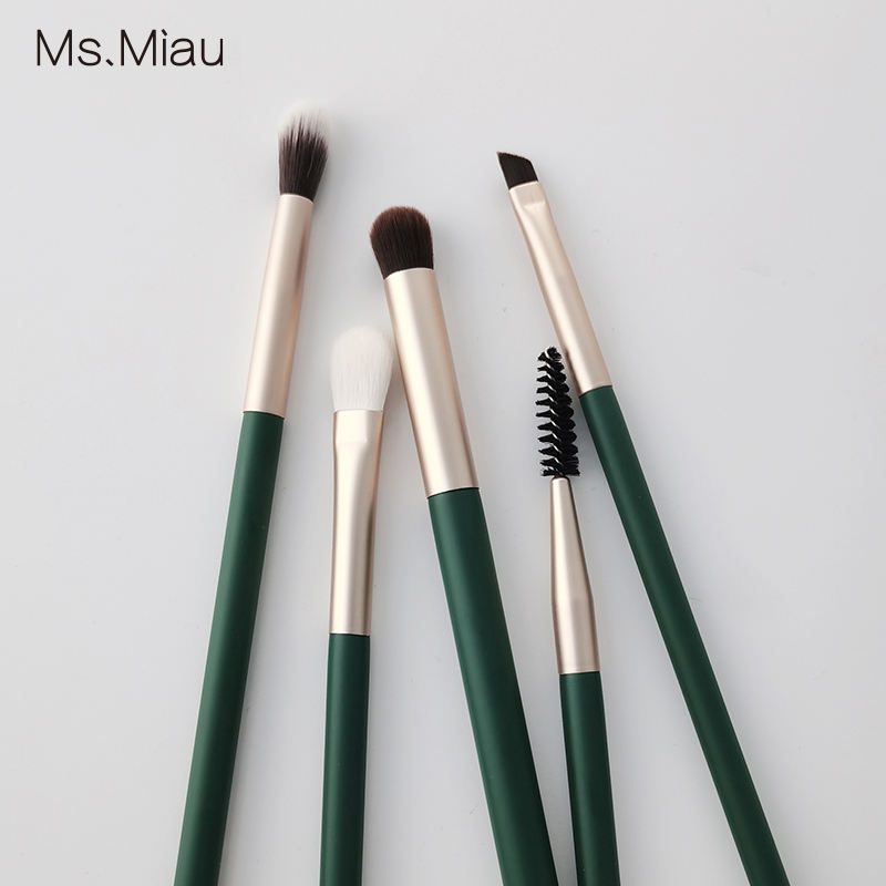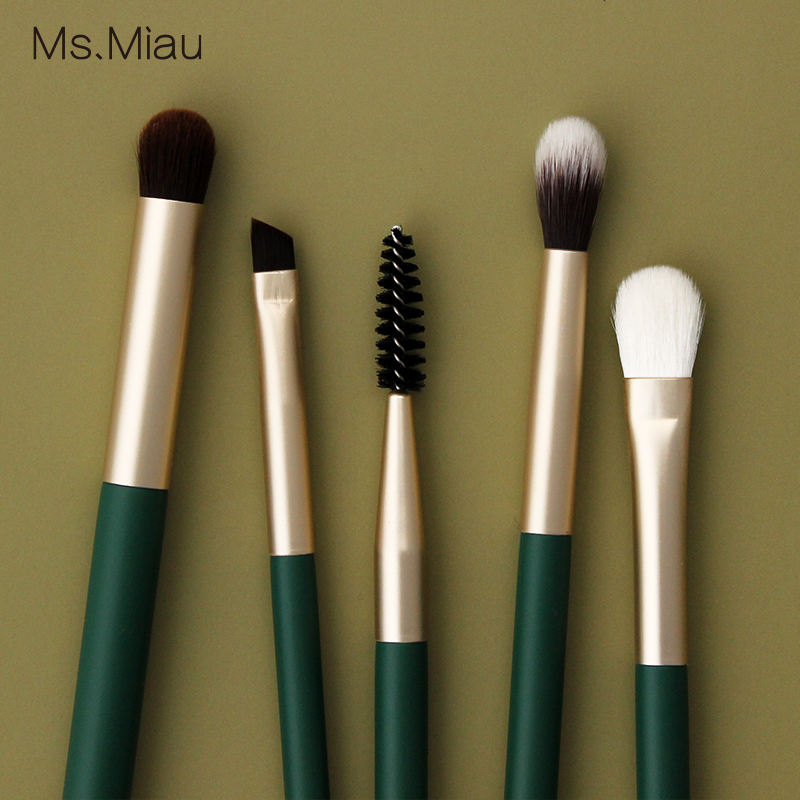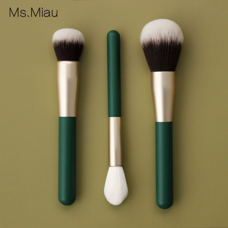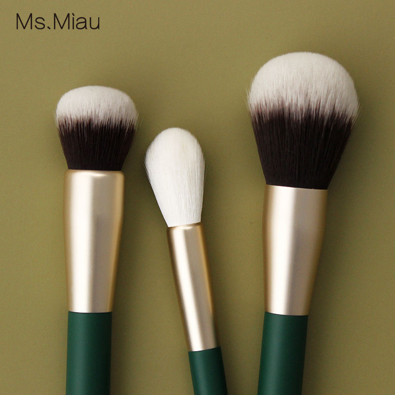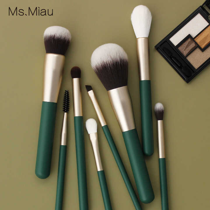 แปรงแต่งหน้าขนแกะใยไฟเบอร์ด้ามไม้เรียวสีเขียวของคนเยอรมันชุดเครื่องมือความงาม8ชิ้น