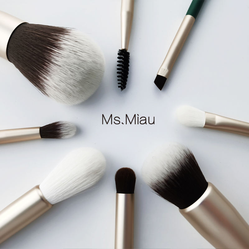 ชุดแปรงแต่งหน้าขนแกะใย PBT จากเยอรมัน8ชิ้นเครื่องมือความงาม