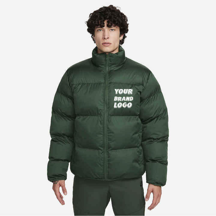 เสื้อแจ็คเก็ตพัฟเฟอร์บุขนแกะ/วิสโคสสีเขียว ผลิตในปากีสถาน สำหรับผู้ชาย อุ่นสบาย สกรีนโลโก้ได้ตามต้องการ คอตั้ง สำหรับฤดูหนาว ลายการ์ตูนแบบปะติดปะต่อ