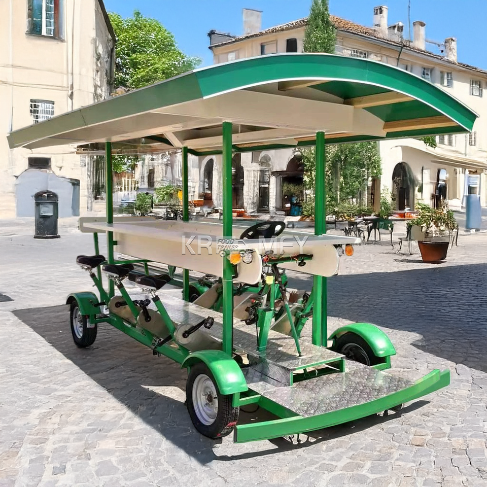รถจักรยานพ่วงขายของเคลื่อนที่ ปาร์ตี้ไบค์ รถบัสจักรยานสำหรับนักท่องเที่ยว ปาร์ตี้ไบค์สีเขียว รถจักรยานขายกาแฟ รถจักรยานขายอาหาร รถจักรยานขายของว่าง รถจักรยานบาร์เคลื่อนที่
