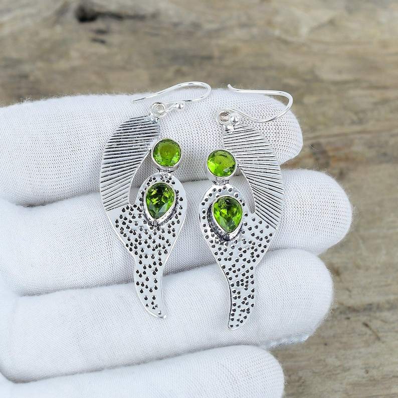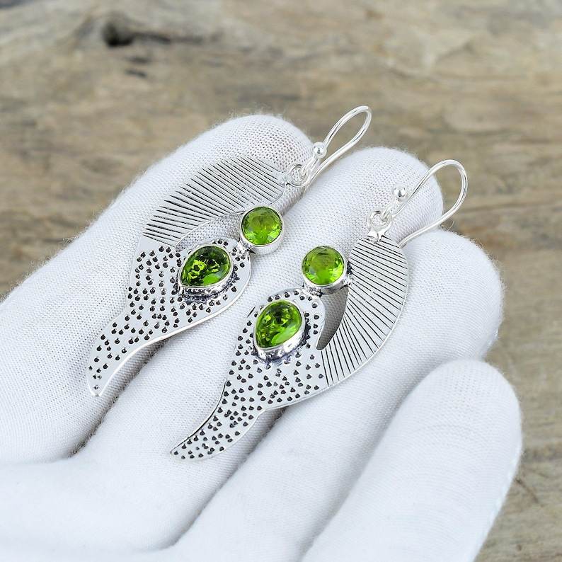 ต่างหูพลอยเพอริดอทสีเขียว เงินแท้ 925 ทำมือ สไตล์โบราณ แบบห้อย ชุบทอง เหมาะสำหรับงานปาร์ตี้ ของขวัญวันครบรอบ