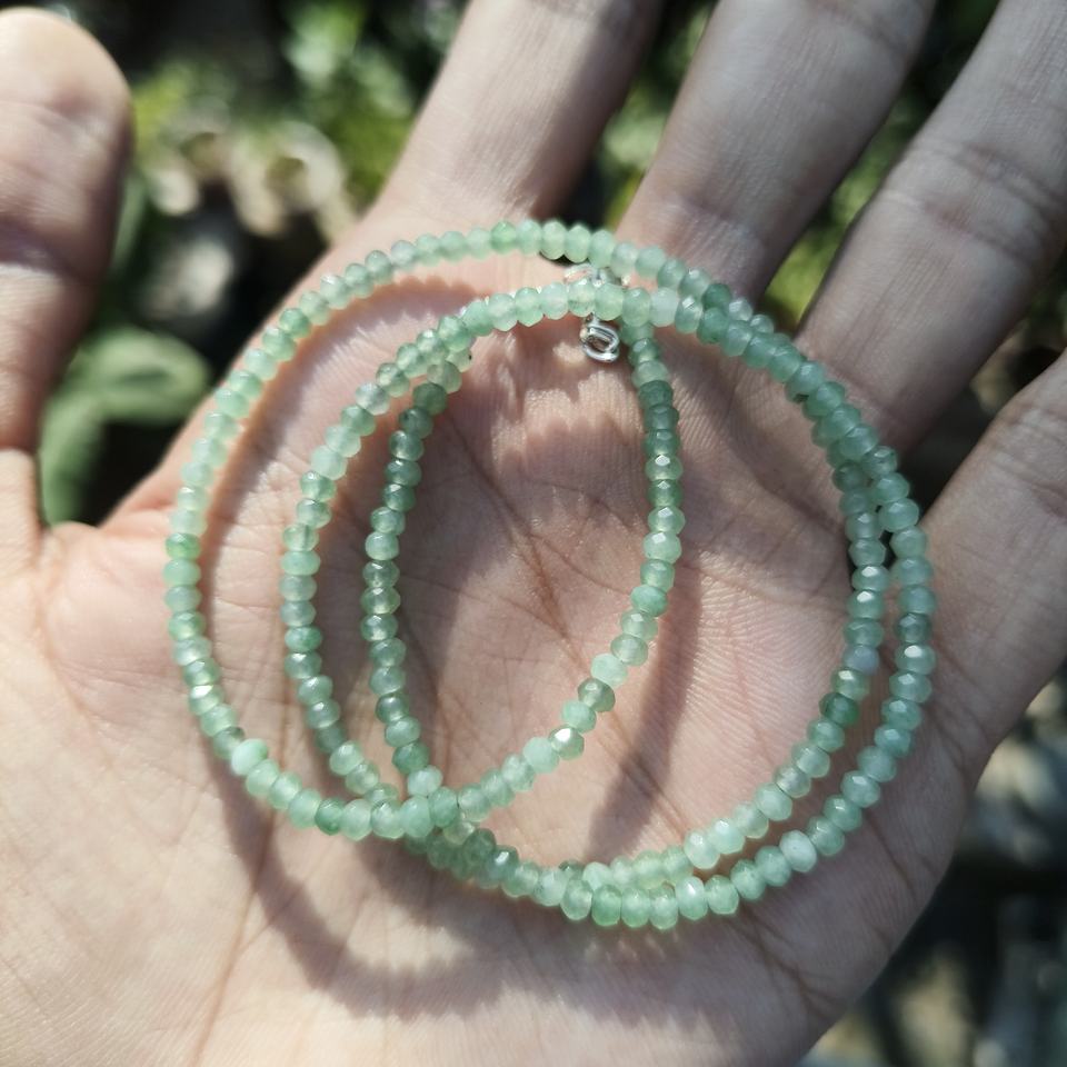 สร้อยคอเพอริดอทสีเขียว ลูกปัดทรงรอนเดลเหลี่ยมเพชรพลอยขนาด 3 มม. สร้อยคอหยกประดับอัญมณี สร้อยคอแบบโชคเกอร์ทำมือ ของขวัญสำหรับเธอ