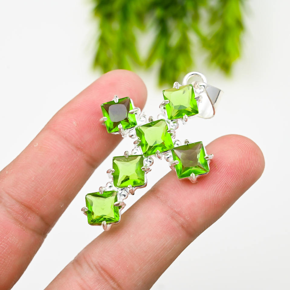 จี้เพอริโดสีเขียวเบาะตัด8มม. ทำจากอัญมณีเงินชุบหรูหราเครื่องประดับงานแต่งงานงานหมั้นสำหรับผู้หญิงเทศกาล