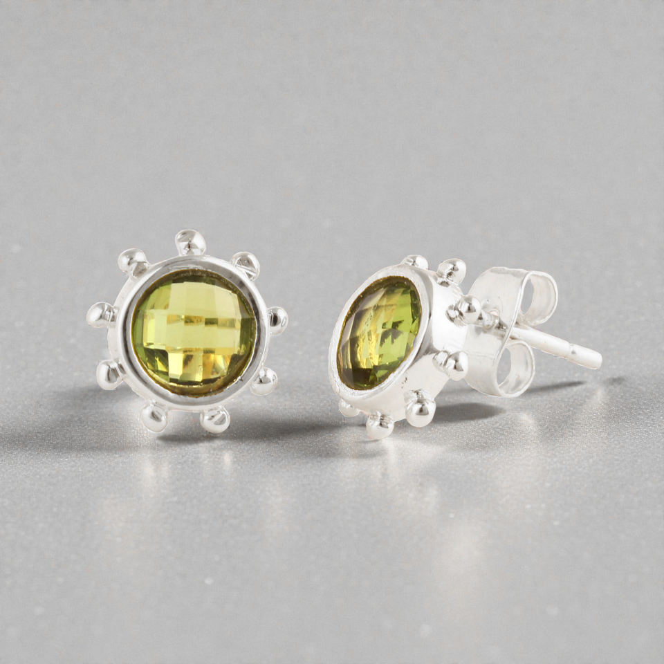 ต่างหูเงินแท้ 925 ประดับพลอยเพอริดอทสีเขียวทรงกลม ดีไซน์มินิมอล พร้อมโมอิสซาไนต์ ขายส่งเครื่องประดับ