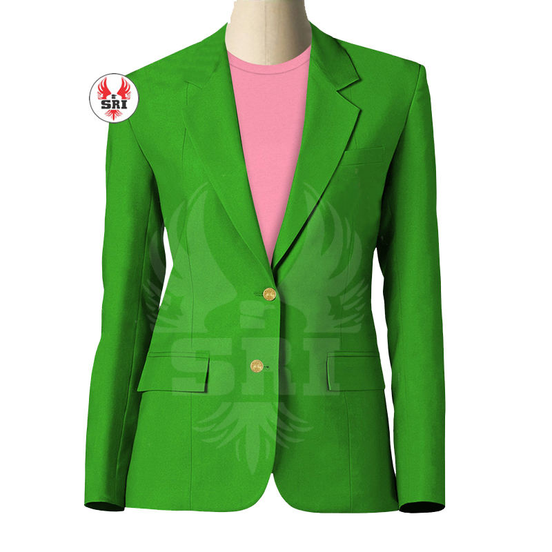 เสื้อเบลเซอร์สตรีแบบสั่งทำพิเศษ ปักลายอัลฟ่าคาปา สีเขียวชมพู | เสื้อเบลเซอร์ผู้หญิงปักลายอัลฟ่าคาปาแบบสั่งทำพิเศษ