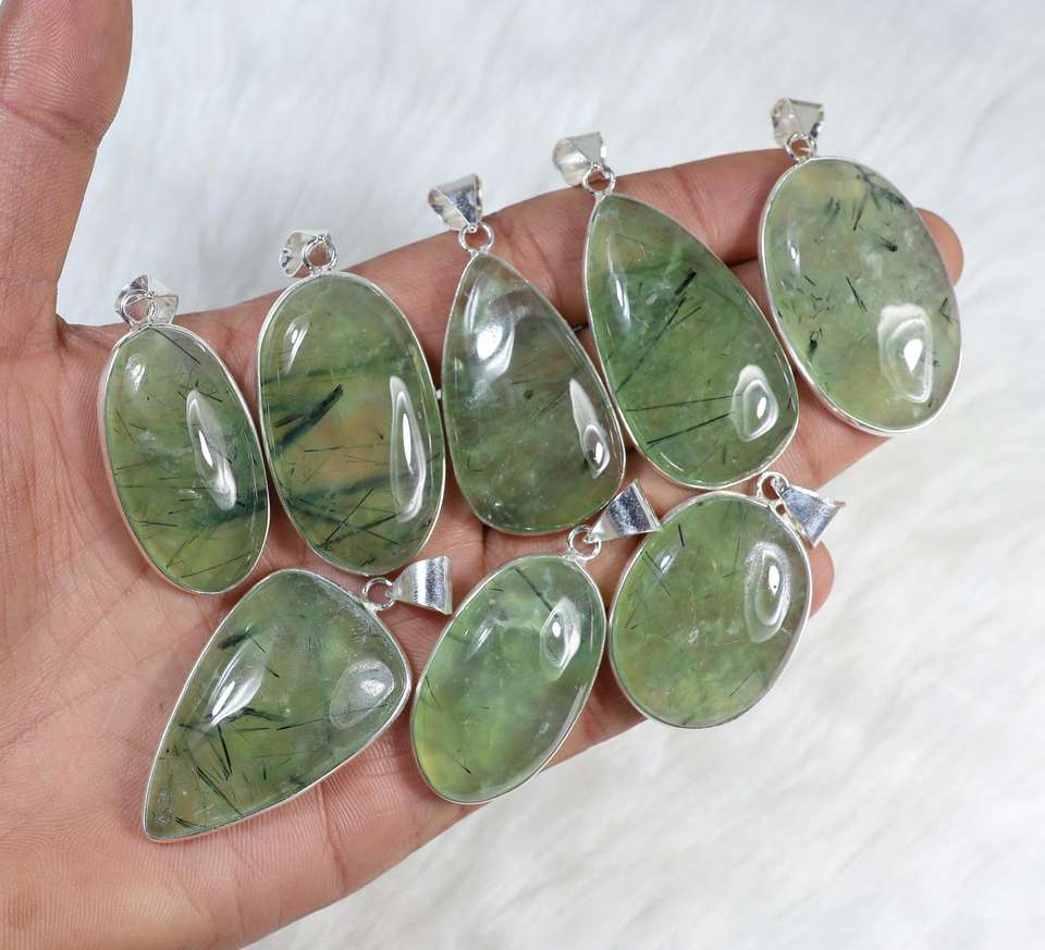ชื่อผลิตภัณฑ์:จี้ชุบเงินอัญมณีพรีไนต์ธรรมชาติ