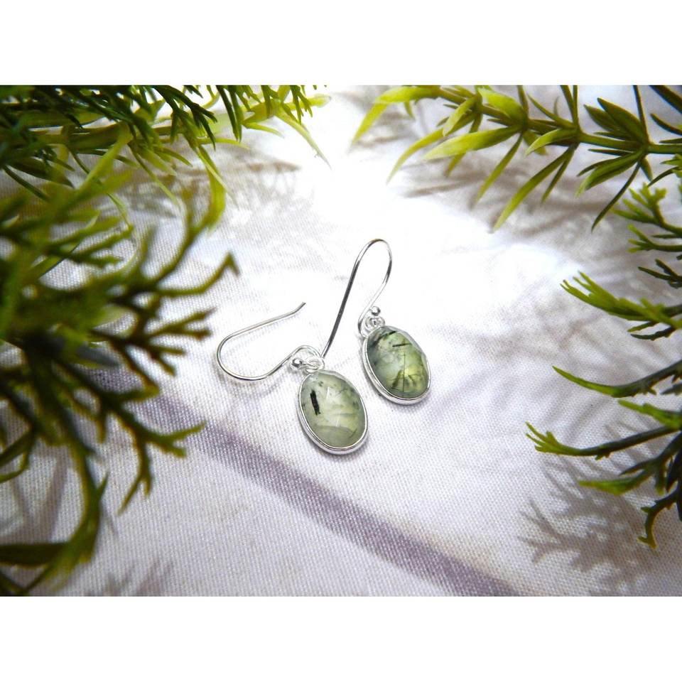 ต่างหูเม็ดกลมเงินสเตอร์ลิงทำด้วยมือสีเขียวเครื่องประดับอัญมณีพรีไนต์สีทองประดับด้วยเม็ดสีทองสำหรับเป็นของขวัญแต่งงานทุกวันสำหรับเธอ