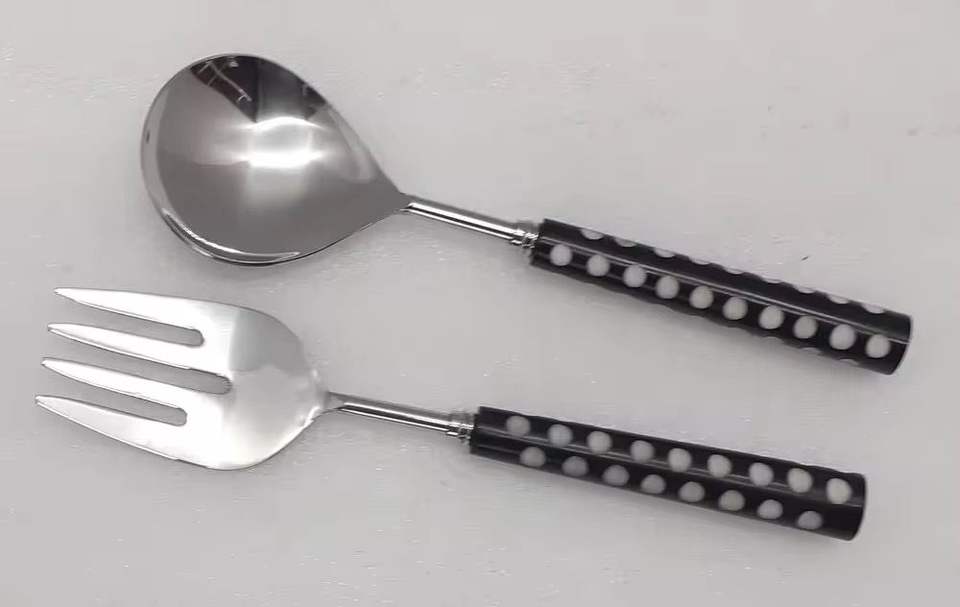 ชุดเสิร์ฟสลัดมือจับเรซินสีเขียวชุดเสิร์ฟสลัดทำจากสเตนเลสสตีลมีด้ามจับที่น่าทึ่ง