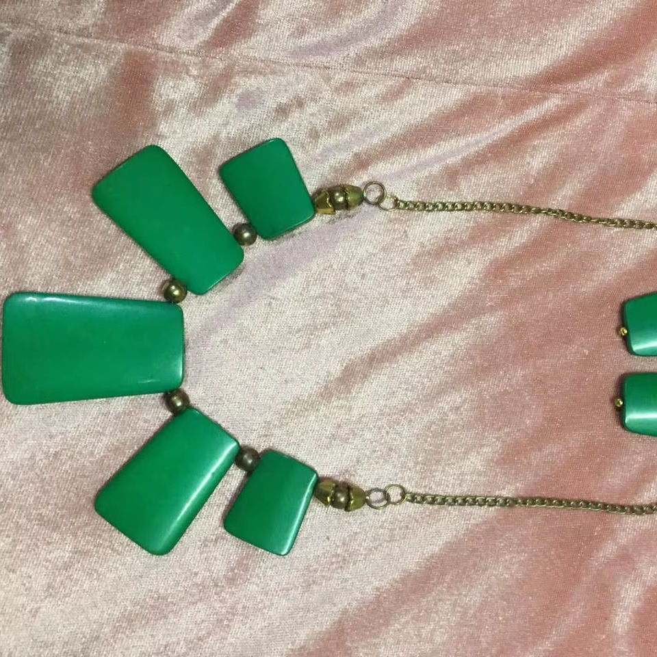 ชุดเครื่องประดับเรซิ่นสีเขียว สร้อยคอพร้อมต่างหูทรงสี่เหลี่ยมผืนผ้า ประดับด้วยลูกปัด งานแฮนด์เมด เครื่องประดับแฟชั่นสำหรับผู้หญิง เหมาะสำหรับงานปาร์ตี้