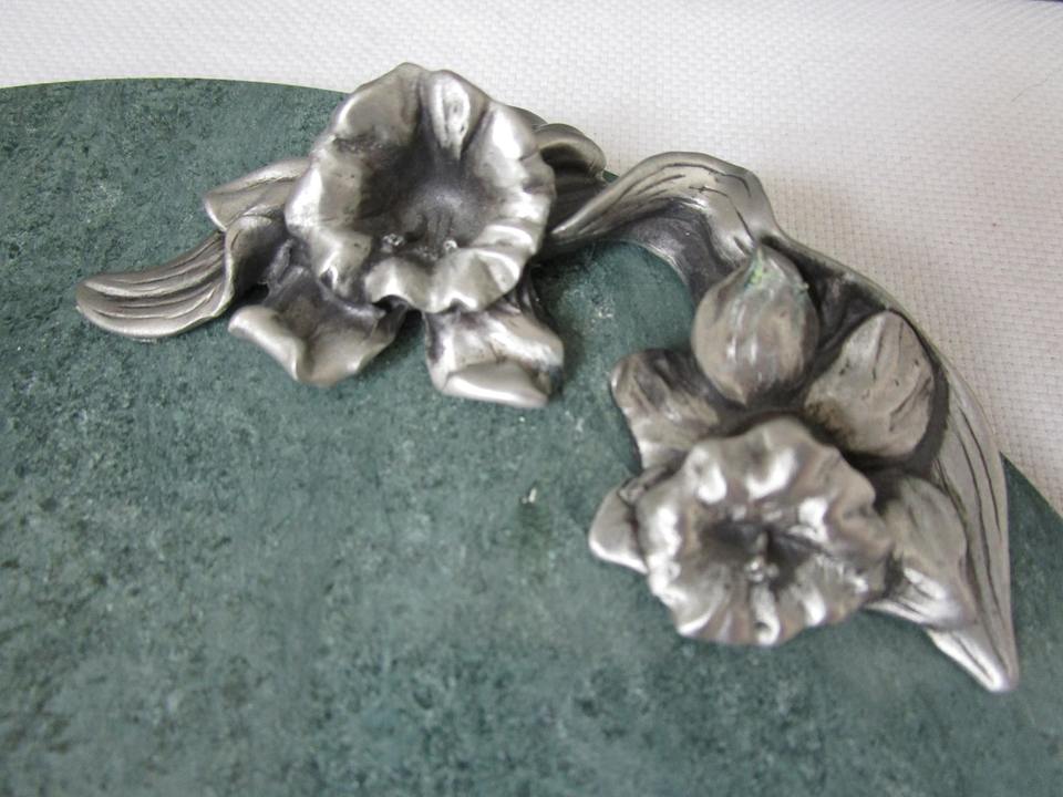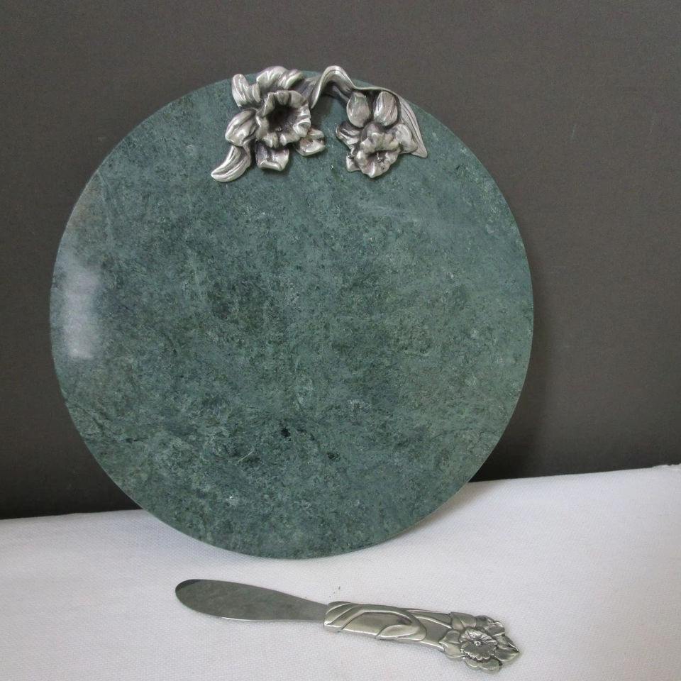 เขียงหินอ่อนทรงกลมสีเขียว ลายดอกไม้ ด้ามจับสีเงิน คุณภาพพรีเมียม สำหรับเสิร์ฟและเป็นของขวัญ นำเข้าจากอินเดีย