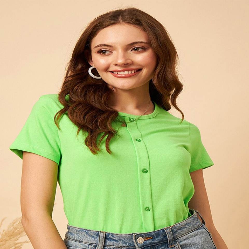 เสื้อยืดลำลองสำหรับผู้หญิงเสื้อยืดคอกลมแขนยาวปกติฤดูร้อนสีเขียว