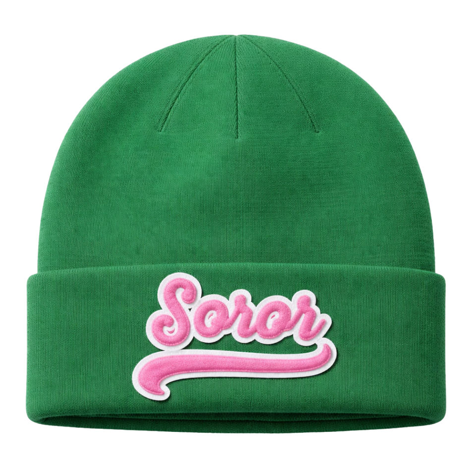 หมวกบีนนี่สีเขียวสำหรับชมรมหญิงสาวกรีก สีชมพูและสีเขียว สำหรับพี่น้องนักศึกษาหญิง ชุดลำลองถักนิตติ้งสำหรับฤดูหนาว ทันสมัยและมีสไตล์