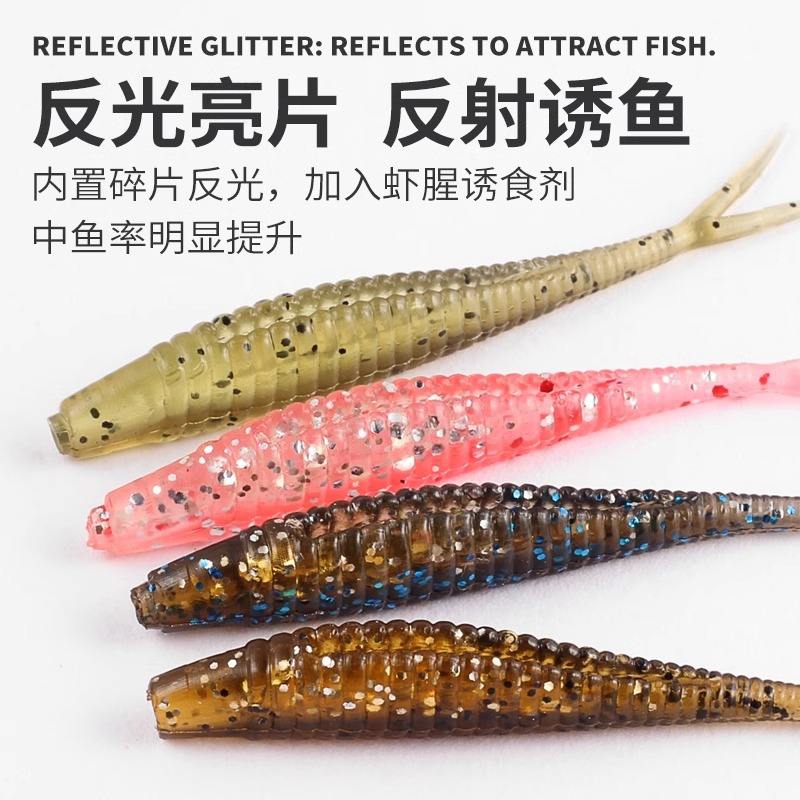 เลือกเลยColor: เหยื่อปลอมแบบนิ่ม หางแฉกเกลียว สีชมพูโปร่งแสง แพ็ค 20 ชิ้น