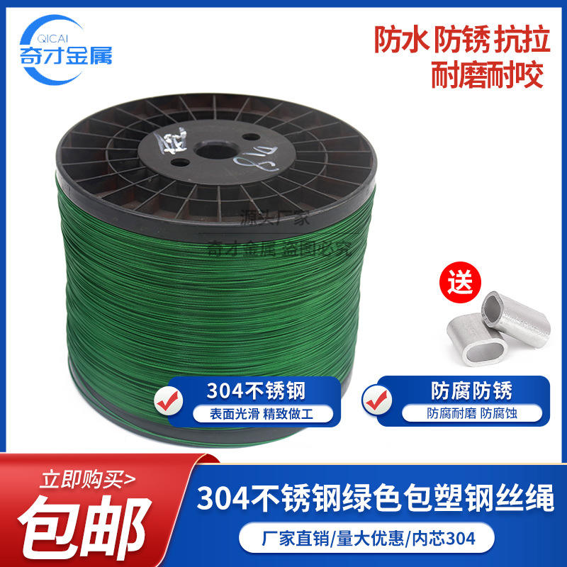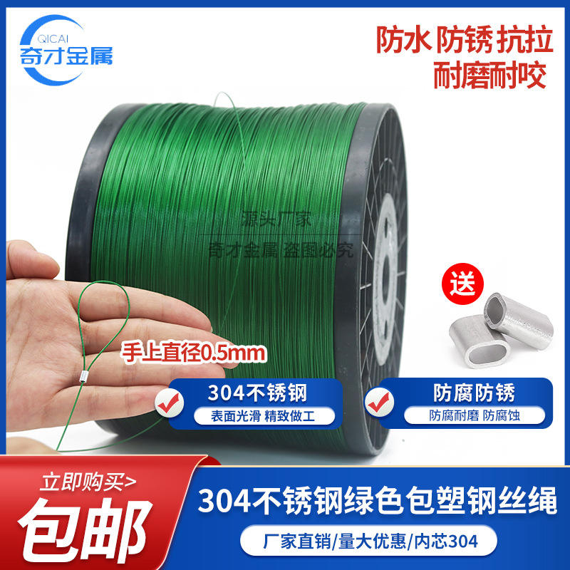 เชือกสลิงเคลือบสแตนเลสสีเขียว ขนาด 0.38-4 มม. ความแข็งแรงสูง ใช้สำหรับตกปลาและดึงต้นไม้