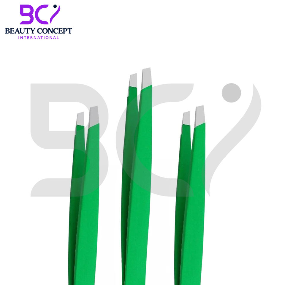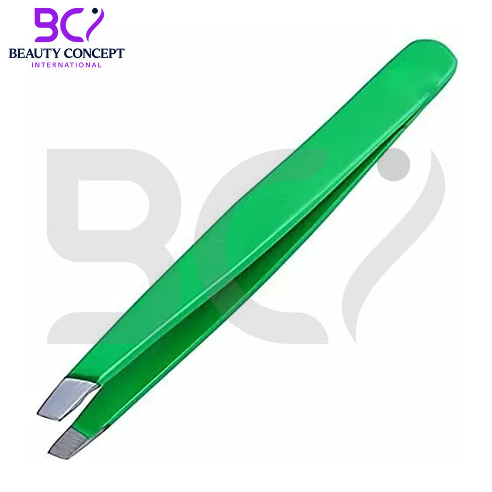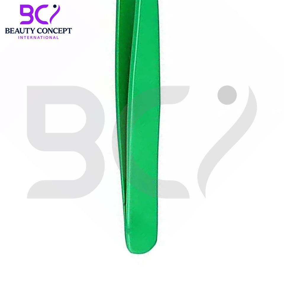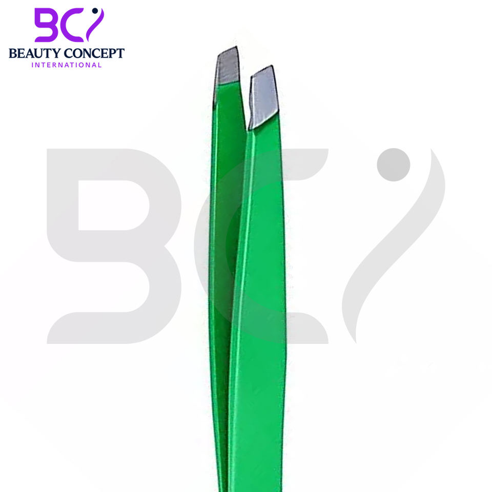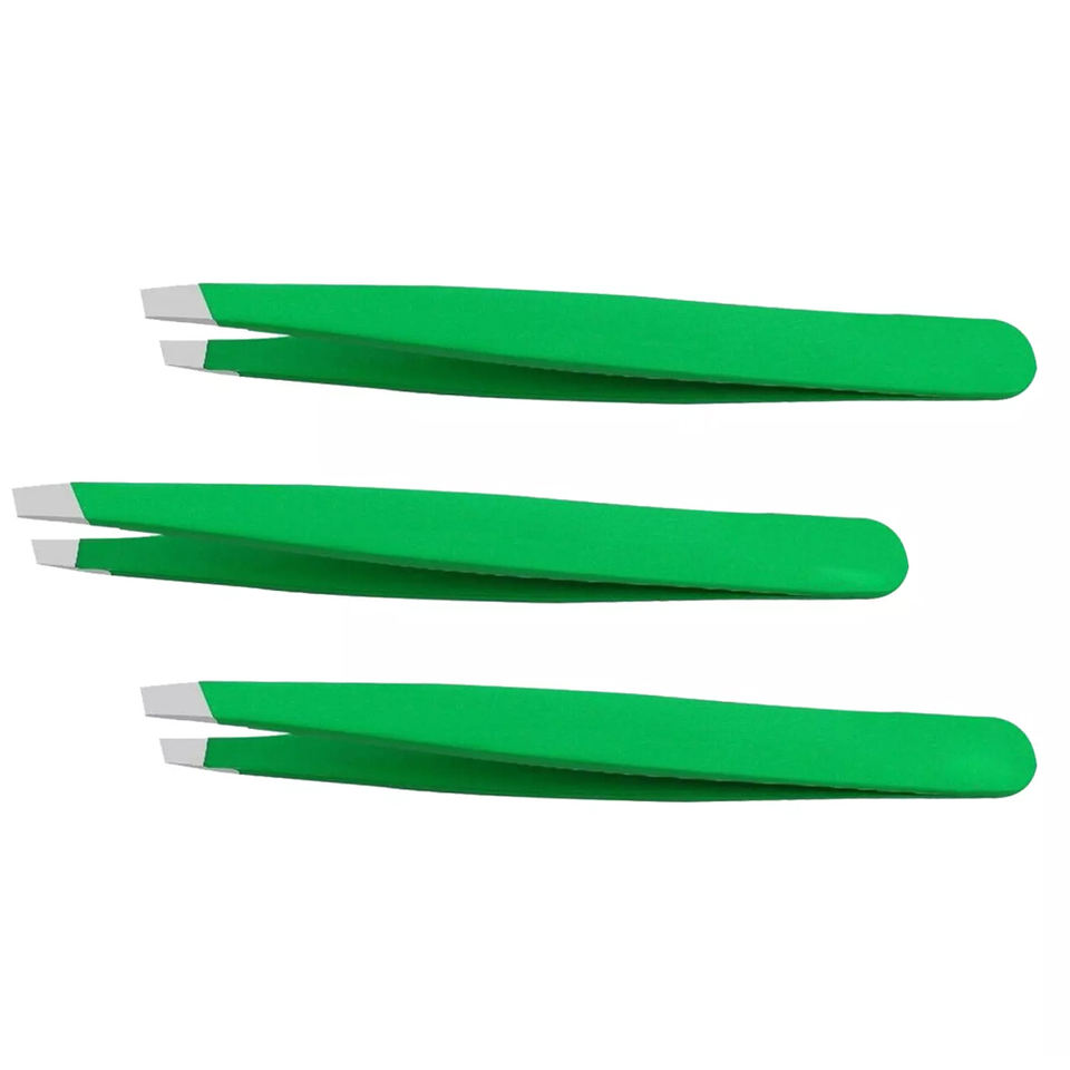 แหนบปลายเอียงสำหรับผู้หญิงเครื่องมือกำจัดขนและคิ้วทำจากสเตนเลสสีเขียว