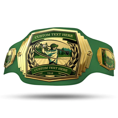 สายรัดสีเขียวลายกอล์ฟ แผ่นทองคำแท้ หนังแท้ ทำมือ สำหรับมวย MMA คาราเต้ เทควันโด มวยปล้ำ แผ่น 3 มิติ แบบกำหนดเองสำหรับรางวัลแชมป์