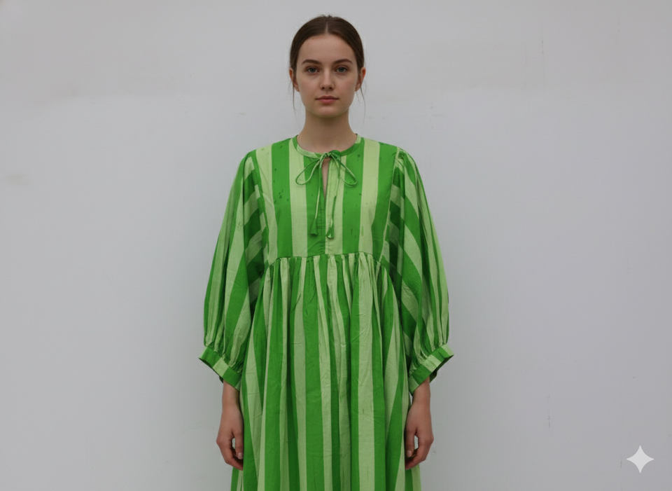 เดรสทรงเอไลน์สั้นลายดอกไม้สีเขียว ผ้าฝ้าย 100% สไตล์โบโฮสำหรับผู้หญิง ทำมือจากอินเดีย เอวธรรมชาติ ระบายอากาศได้ดี สวมใส่สบายๆ ในฤดูร้อนและฤดูใบไม้ร่วง