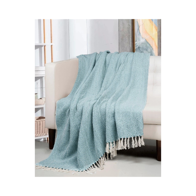 ผ้าคลุมโซฟาผ้าลินินผสมลายแจ็คการ์ดสีเขียว ขนาด 70x90 นิ้ว พร้อมชายครุย ได้รับการรับรองมาตรฐาน OEKO-TEX ตัวเลือกที่มีสไตล์สำหรับการตกแต่งภายในระดับพรีเมียม