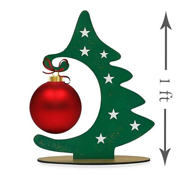 ต้นไม้สีเขียวประดับต้นคริสต์มาสแบบตั้งบนโต๊ะพร้อมดาวตัดและตัวหนาต้นไม้วันหยุดที่ตัดดาว