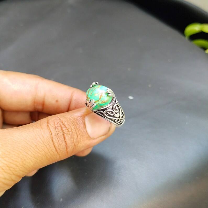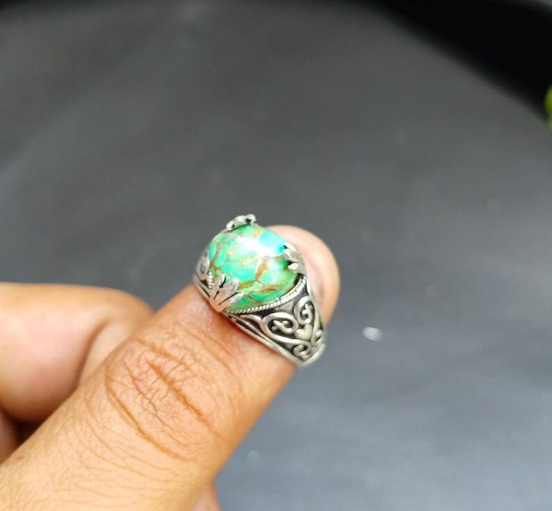 แหวนเทอร์ควอยซ์สีเขียวเงินสเตอร์ลิง | เครื่องประดับโบโฮวินเทจทำด้วยมือ | ของขวัญช่างฝีมือไม่เหมือนใครสำหรับผู้หญิง