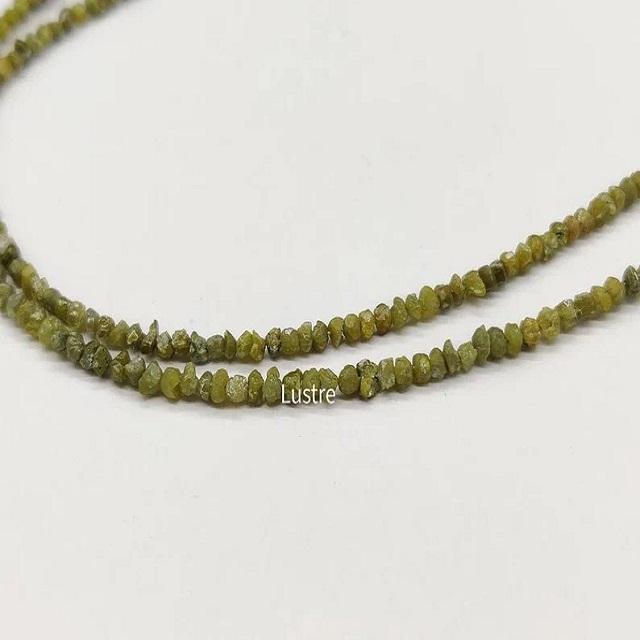 ลูกปัดเพชรธรรมชาติสีเขียวไม่ผ่านการเจียระไน ขนาด 2-3 มม. ความยาว 15 นิ้ว ของขวัญวันเกิด เครื่องประดับสั่งทำพิเศษ