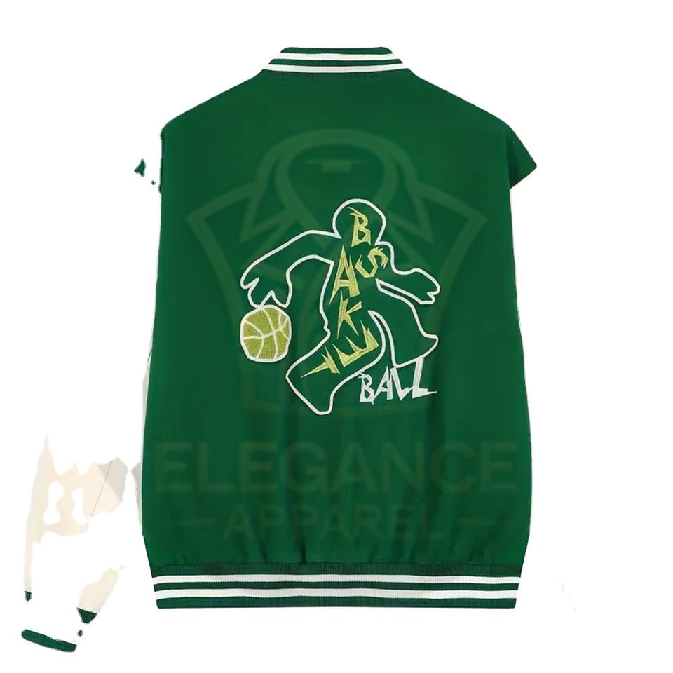 เสื้อแจ็คเก็ตเบสบอลวาร์ซิตี้สำหรับผู้ใหญ่ สีเขียวขาว คุณภาพดี มีโลโก้ของตัวเอง ผู้จัดจำหน่ายที่ดีที่สุด สินค้ามาใหม่ สำหรับฤดูใบไม้ร่วง สไตล์วิทยาลัย